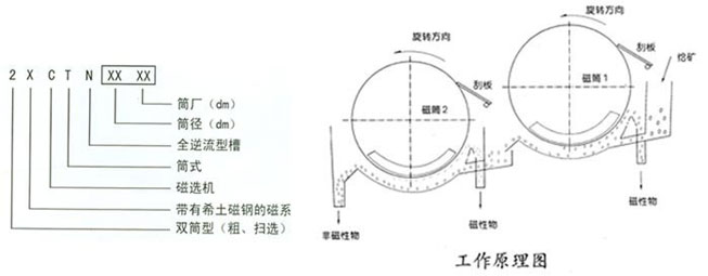 該類設備利用永磁磁系所產生的磁力,將礦漿中的磁性礦物吸收引到圓筒表面上來,并隨著圓筒一起旋轉,待脫離磁場作用后在重力、(刮板)作用下,排出機外,而非磁性物料從尾礦口排除,完成分選作用。
